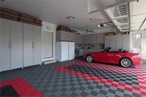 When a couple of empty-nesters in Collegeville, Penn. looked for interior designers, they didn’t want to stop with someone specializing in bathrooms and boudoirs. After all, people live into the triple digits these days, so retirement should be even more fun than our working years.So they wanted a garage that reflects their interests, is kept tidy, and yes, matches her red sports car while also accommodating his motorcycle.